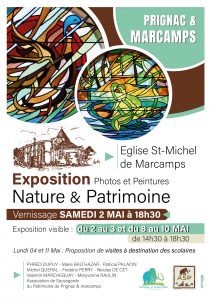 Accueil » Exposition Nature et Patrimoine : photos et peintures Exposition Nature et Patrimoine : photos et peintures < Retour à : Actualités et agenda 02 mai 2026 Eglise Saint Michel de Marcamps 14 h 30 - 18 h 30 Eglise Saint Michel de Marcamps